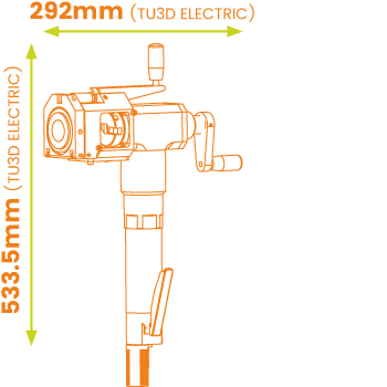| TU3D P | Motorization Pneumatic / 1HP | Power 6Bars (90PSI) | Specifications 1000L/min (35 cfm) | Weight 5.5kg |